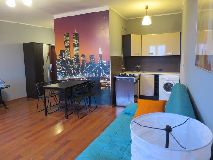 Studio sk??ada si?? ze s??onecznego pokoju z aneksem kuchennym , przedpokoju i ??azienki.