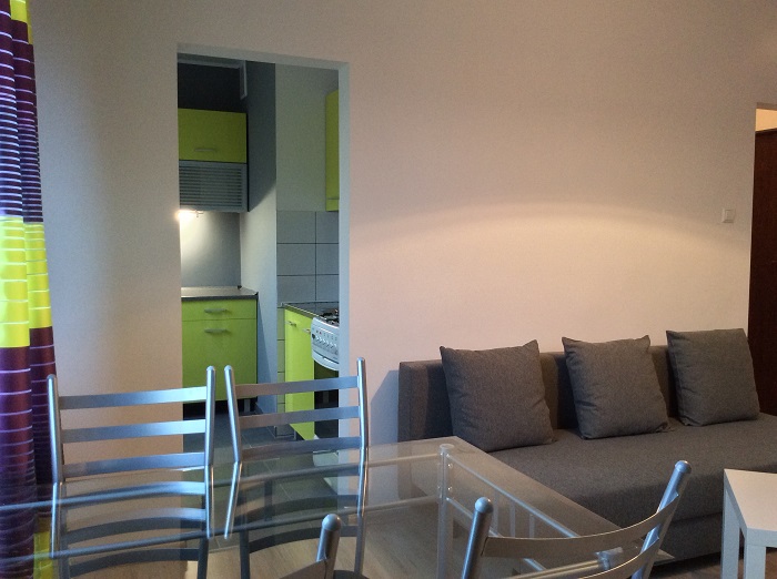 Apartament Limonkowy to jednopokojowe, w pe??ni wyposa??one mieszkanie o pwierzchni 27m2. Usytuowane na 4 pi??trze, w budynku 4 pi??trowym, bez windy.
