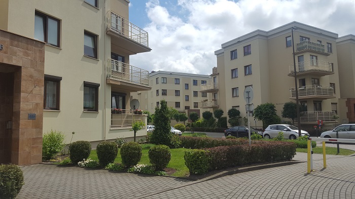 Mieszkanie ma powierzchnię około 60m2 i usytuowane jest na parterze budynku o niskiej zabudowie.
