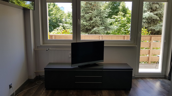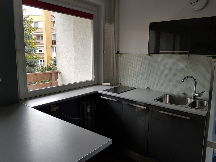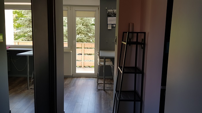 Studio składa się ze słonecznego pokoju z balkonem połączonego z aneksem kuchennym - pełni wyposażonym, przedpokoju oraz łazienki.
