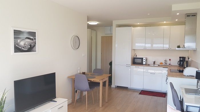 Apartament Mark z balkonem to dwupokojowe, przestronne, komfortowe, słoneczne i w pe??ni wyposażone mieszkanie. Usytuowane w Gdyni Pogórze na zamkniętym osiedlu. Budynek o niskiej zabudowie zlokalizowany w kameralnej części miasta. Okna mieszkania wychodzą na zieloną część osiedla, dzięki czemu w mieszkaniu jest bardzo cicho i nie słychać ulicznego gwaru.