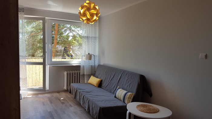 Apartament zlokalizowany w Sopocie na Kamiennym Potoku. Nieopodal sklep i środki komunikacji miejskiej.