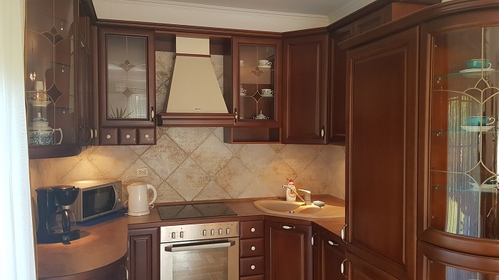 - pełne wyposażenie kuchenne (garnki, naczynia, sztućce)